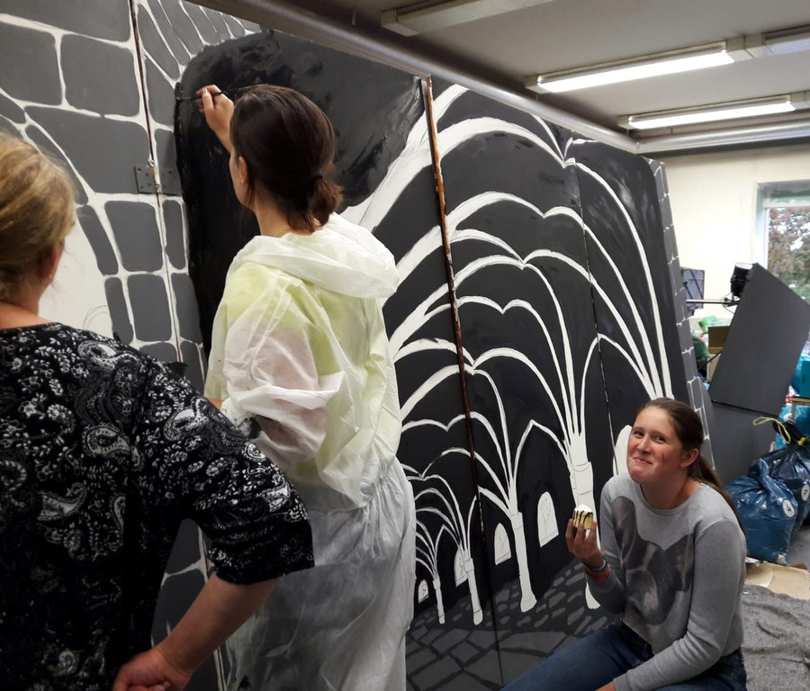 Kulissenbemalung - Olja Lippert und Helfer/innen