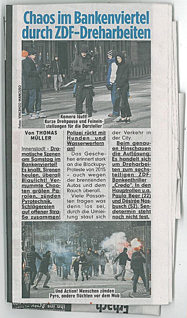 Ob als Kunde am Geldautomat, als Demonstrant mit und ohne Actionpotential - wir hatten richtig Spaß beim Dreh der ZDF-Serie